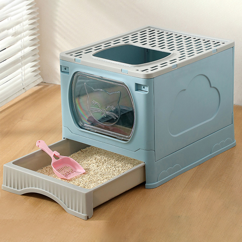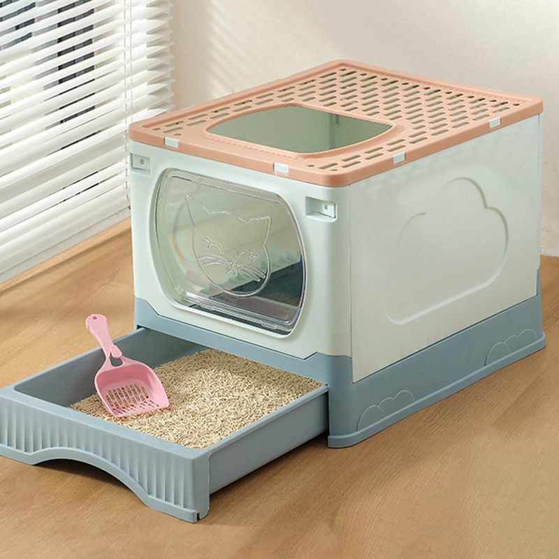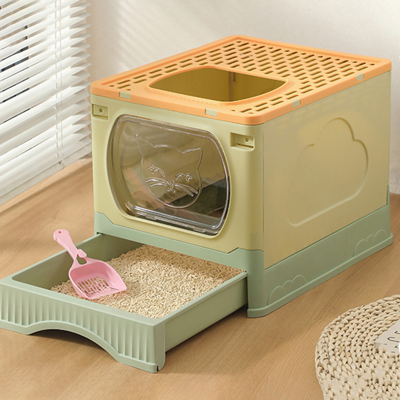 Caja de arena para gatos plegable, extraíble y semicerrada