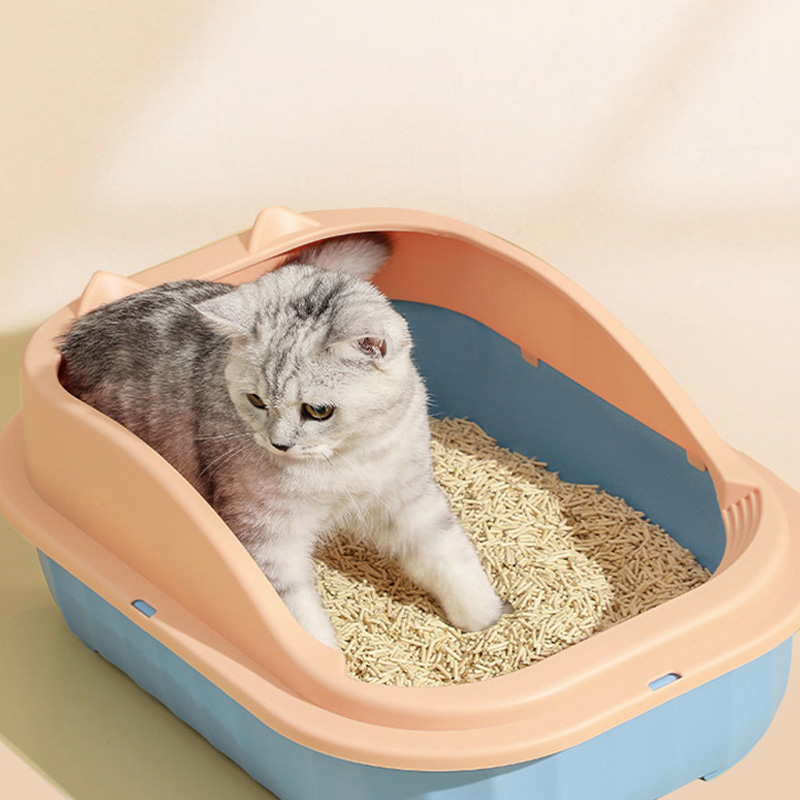 Esta caja de arena presenta un diseño abierto que facilita el acceso a los gatos, promoviendo un ambiente libre de estrés para que puedan realizar sus necesidades. Con una variedad de colores base para elegir, incluidos azul, rosa, blanco, verde, amarillo, gris y más, puedes seleccionar el que mejor complemente la decoración de tu hogar. También ofrecemos opciones de personalización de tamaño, lo que le permite adaptar la caja de arena para satisfacer sus necesidades específicas o requisitos de espacio.