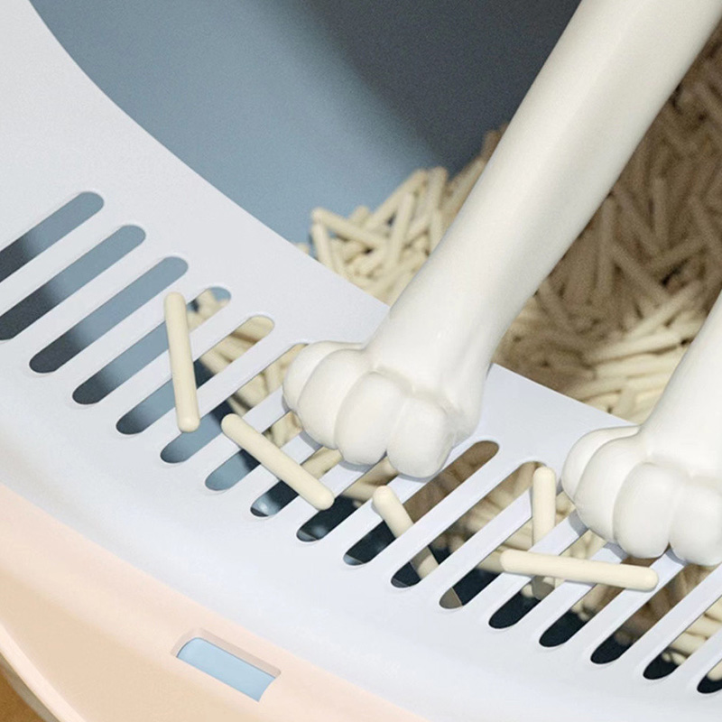 La puerta delantera de la caja de arena para gatos está diseñada como una abertura circular con un diámetro de 24 cm, lo que facilita la entrada y salida de los gatos, al tiempo que evita eficazmente que la arena para gatos salpique. Hay respiraderos en la parte inferior para ayudar a la circulación del aire y reducir la generación de olores. Además, la altura de la caja de arena para gatos está diseñada para ser de 13 cm, lo que no solo puede evitar que se saque la arena para gatos, sino que también mantiene el suelo limpio.