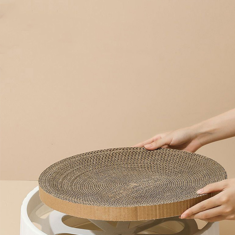 Las dimensiones de 41 cm de diámetro y 13 cm de altura garantizan que la tabla para patas de gato sea lo suficientemente espaciosa para que la mayoría de los gatos puedan estirarse y rascarse cómodamente. La construcción robusta y el diseño elevado ayudan a proteger los pisos y muebles de daños, ya que proporcionan una salida adecuada para el comportamiento natural de rascado del gato.