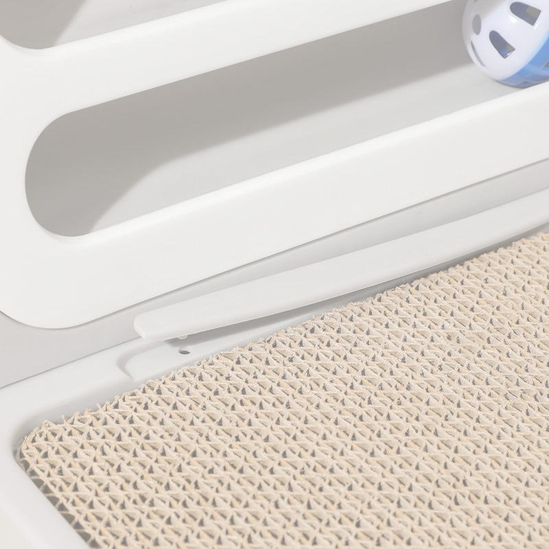 La construcción robusta garantiza que el rascador pueda soportar el juego vigoroso y el rascado de los gatos, promoviendo su bienestar y protegiendo los muebles de daños. En general, este rascador para gatos en forma de L no solo es una herramienta práctica para mantener la salud de un gato, sino también un elemento decorativo que combina a la perfección con la decoración del hogar.