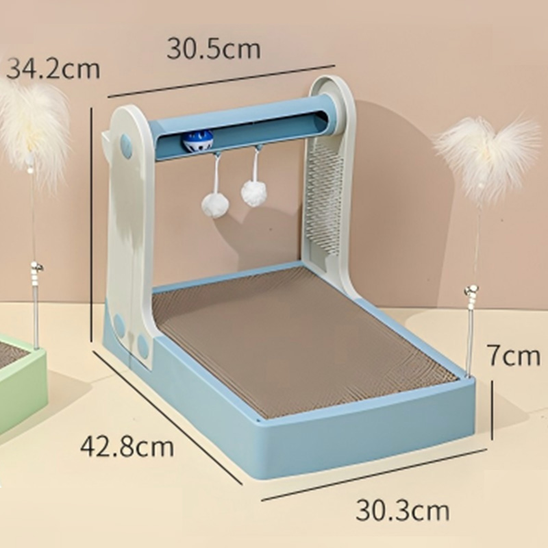 La sección superior del rascador incluye un divertido juguete colgante, al que tu gato puede acceder fácilmente. Este elemento interactivo no sólo estimula los instintos de caza de tu gato sino que también proporciona estimulación mental, reduciendo el aburrimiento y promoviendo la actividad física.