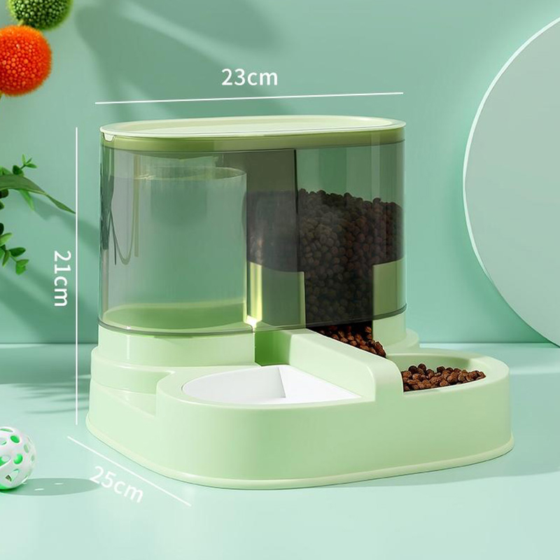 El recipiente redondeado y transparente le permite ver fácilmente los niveles restantes de comida y agua sin abrir la tapa con frecuencia; el color verde claro es fresco y suave, lo que lo hace parecer un artículo decorativo en su hogar, agregando practicidad y atractivo estético. Ya sea que viva solo con su mascota o tenga una familia con mascotas, facilita el cuidado diario y simplifica las rutinas de alimentación.