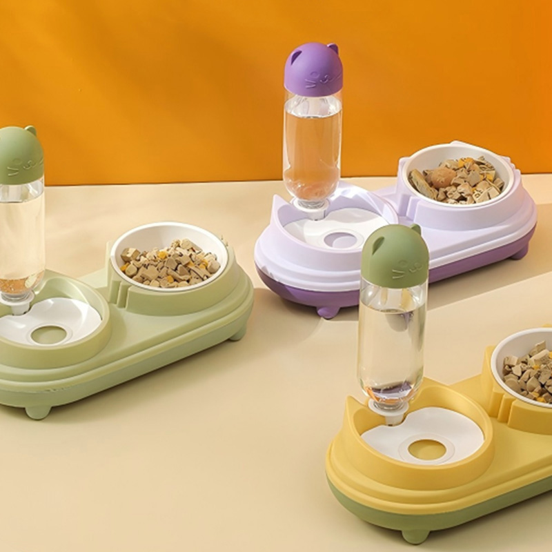 Cuenco para mascotas con doble combinación de colores y cabeza de gato para alimentar y beber