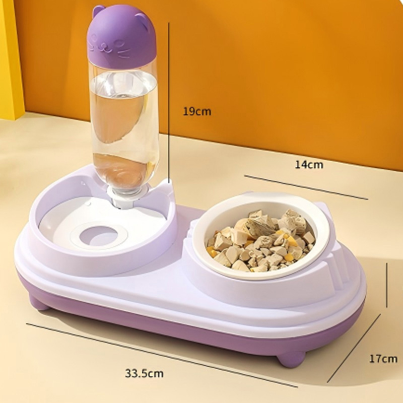 Este cuenco para mascotas está cuidadosamente diseñado con una botella para beber de 19 cm de alto y dos cuencos para alimentos de 14 cm de diámetro, lo que garantiza la comodidad de su mascota durante las horas de alimentación. Su tamaño compacto de 33,5 cm x 17 cm lo hace adecuado para cualquier espacio, desde apartamentos pequeños hasta casas más grandes. Fabricado con materiales de alta calidad, el recipiente es fácil de limpiar y mantener, lo cual es crucial para la salud y la higiene de su mascota. La base resistente evita que se vuelque, lo que garantiza un ambiente seguro para alimentarse y beber para sus amigos peludos.