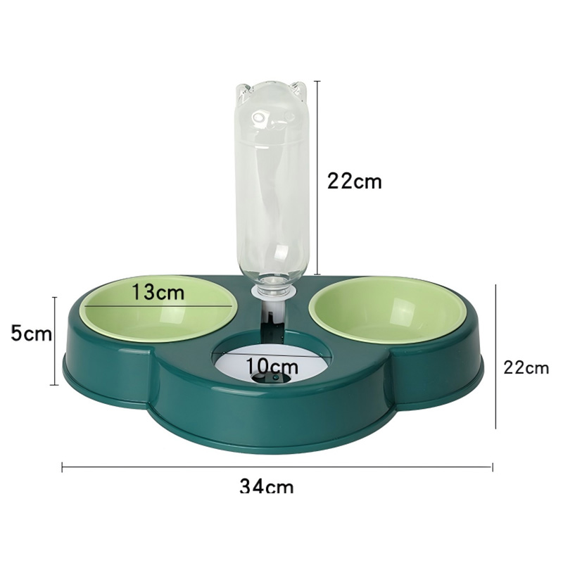 El diseño de doble cuenco permite alimentación y riego simultáneos, ahorrando tiempo y espacio. Cada cuenco mide 13 cm de diámetro, lo que proporciona un amplio espacio para comida y agua, lo que garantiza la comodidad y conveniencia de su mascota. Los cuencos están colocados a una altura óptima de 5 cm, lo que reduce la tensión en el cuello de su mascota y promueve una postura de alimentación más saludable.