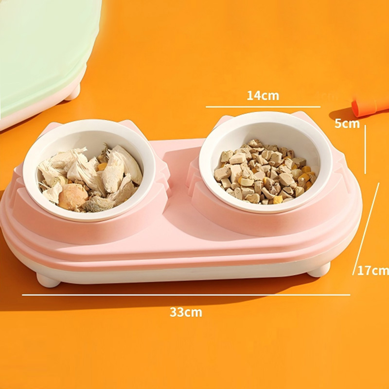 Cada juego incluye dos recipientes separados, cada uno de los cuales mide 14 cm de diámetro y 5 cm de altura, lo que proporciona un amplio espacio tanto para comida como para agua. Toda la estación de alimentación está sostenida por una base robusta que mide 33 cm de largo y 17 cm de ancho, lo que garantiza la estabilidad y evita derrames. El diseño elevado de los cuencos promueve una mejor postura para sus mascotas, reduciendo la tensión en sus cuellos y espinas.