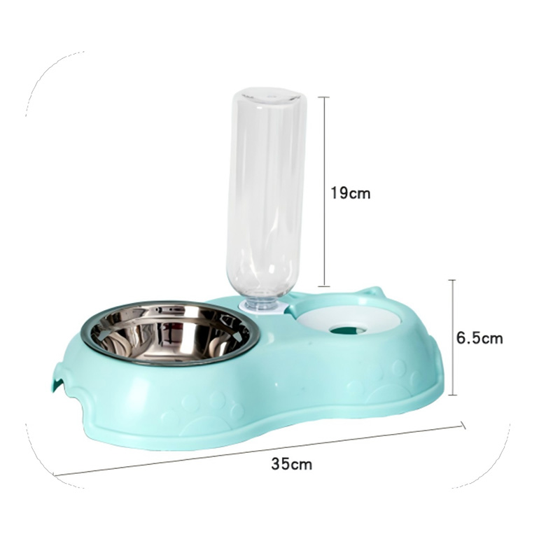 El diseño del cuenco doble es bien pensado, con una base antideslizante que evita que los cuencos se deslicen durante la alimentación, lo que es especialmente beneficioso para mascotas más grandes o aquellas con un estilo de alimentación más entusiasta. La capacidad de los cuencos es generosa, acomodando una comida completa y una cantidad sustancial de agua, lo que los hace adecuados para mascotas de todos los tamaños. El diseño transparente del dispensador de agua le permite evaluar rápidamente el nivel del agua sin ningún problema, y su tapa fácil de quitar facilita la limpieza y el mantenimiento.