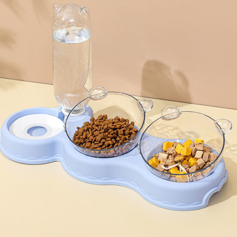 Además del recipiente de agua, el juego incluye dos recipientes separados para comida, lo que le permite proporcionar agua y comida en una ubicación conveniente. Esto no sólo ahorra espacio sino que también facilita la gestión de la rutina de alimentación de su mascota.
