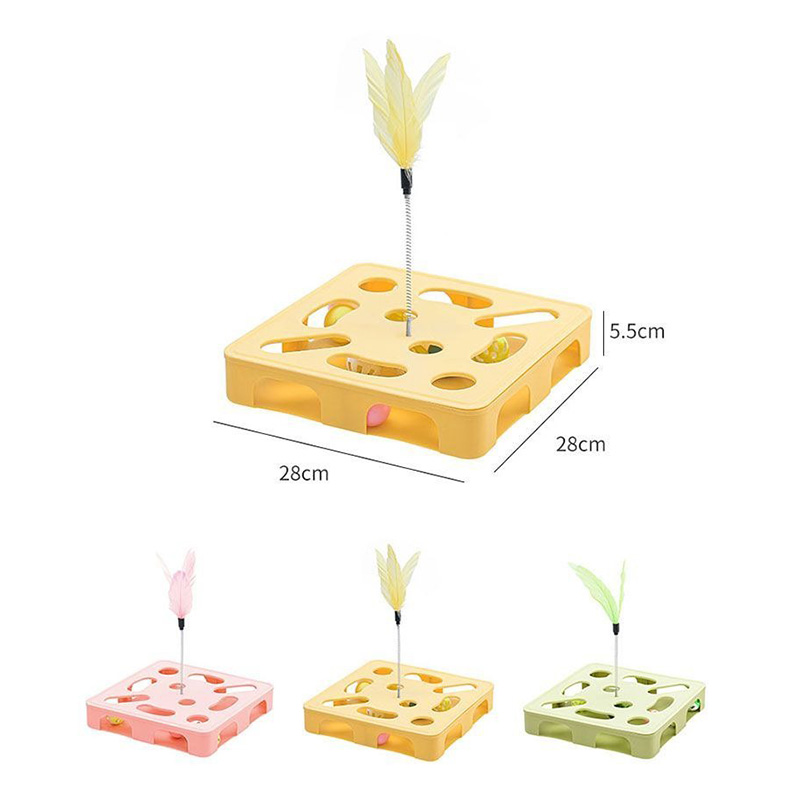 El juguete está disponible en tres atractivos colores: amarillo, verde y rosa, cada uno de los cuales ofrece un aspecto fresco y atractivo que puede combinarse fácilmente con varios estilos domésticos. El uso de colores brillantes y alegres no sólo hace que el juguete sea visualmente atractivo sino que también ayuda a estimular los sentidos visuales de tu gato, añadiendo otra capa de disfrute a su tiempo de juego.